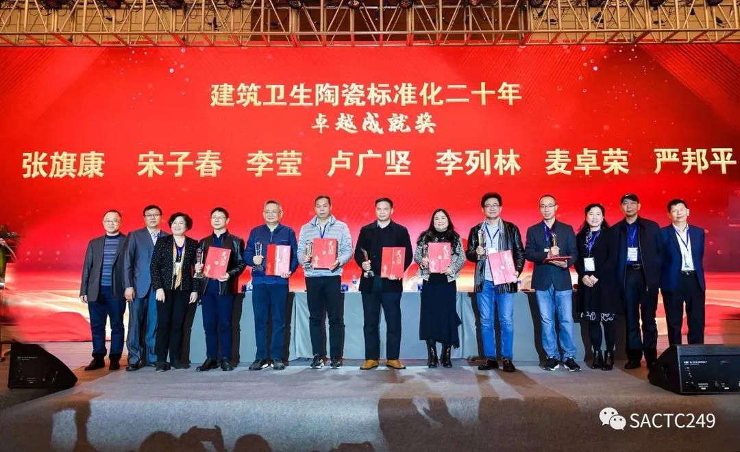 會上還對全國建筑衛(wèi)生陶瓷標(biāo)準(zhǔn)化技術(shù)委員會二十年先進(jìn)人物進(jìn)行了表彰,授予:尹虹、繆斌、王巍建筑衛(wèi)生陶瓷標(biāo)準(zhǔn)化工作二十年功勛人物獎;張旗康、宋子春、李瑩、盧廣堅、李列林、麥卓榮、嚴(yán)邦平建筑衛(wèi)生陶瓷標(biāo)準(zhǔn)化工作二十年卓越成就獎;區(qū)卓琨、張錦揚、肖景紅、何寶金、陳嵐波建筑衛(wèi)生陶瓷標(biāo)準(zhǔn)化工作二十年優(yōu)秀委員獎;聞萬梁、文興芳、黃錦、楊雪定、楊君之建筑衛(wèi)生陶瓷標(biāo)準(zhǔn)化工作二十年優(yōu)秀觀察員獎。